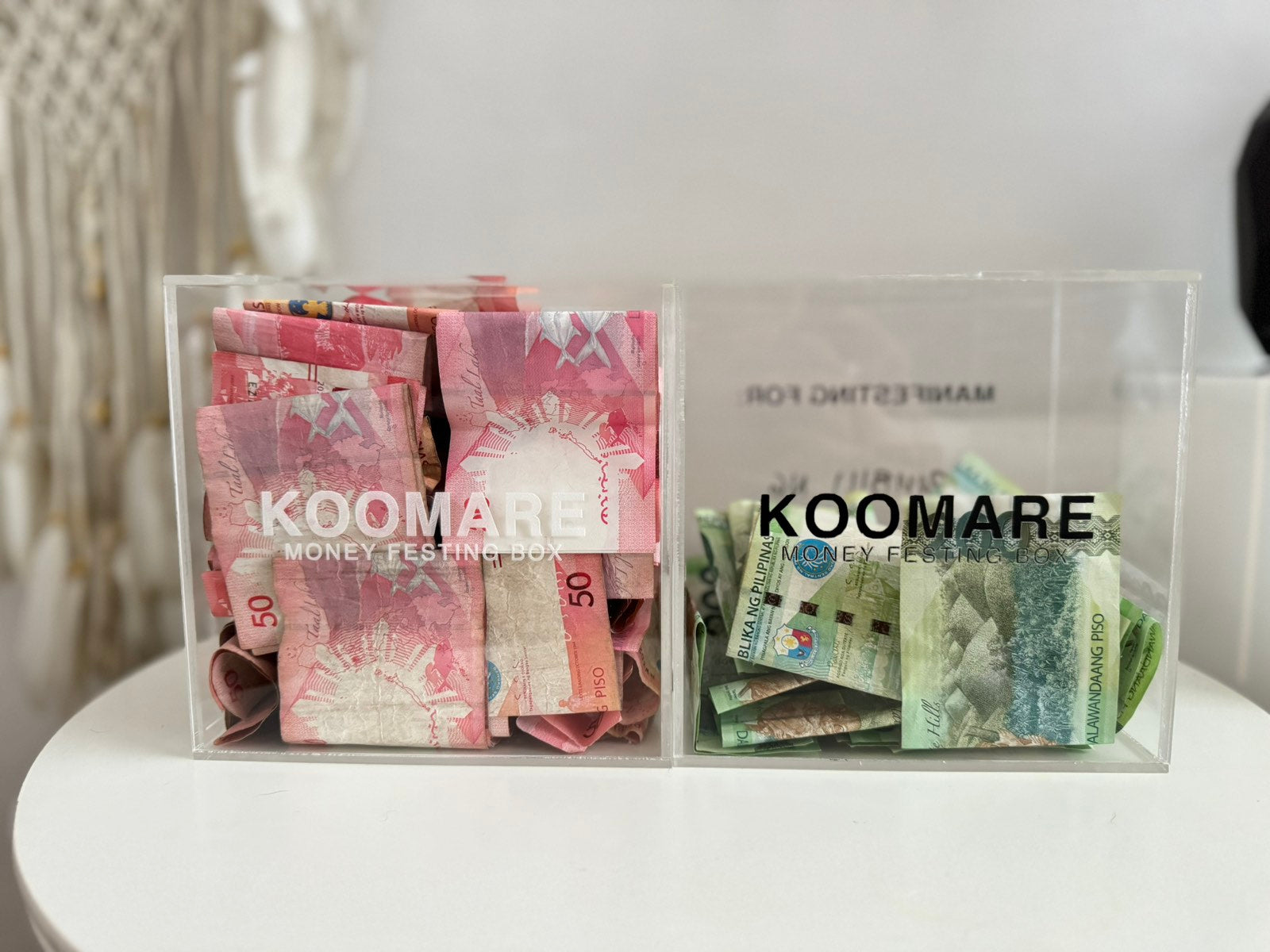 Meet the Koomare Money-festing Box – your financial guru for the entire year! Crafted from clear cast acrylic, it's as sturdy as glass but lighter than wood. Saving has never looked this good! A simple wipe with a clean cotton or smooth cloth, and a spritz of soap and water will keep it shining. Let's go and money-fest our dreams together!